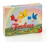 Spieldauer: ca. 30 Minuten.Für 2 - 4 Spieler geeignet. Farben ringsum „Auf Empfehlungsliste Kinderspiel des Jahres 2008“ Auf der mit Blumen übersäten Wiese haben sich viele bunte Schmetterlinge versteckt. Wer findet die Gegenstände, Tiere oder Pflanzen mit den gleichen Farben, die auf den Schmetterlingsflügel sind? Mit raten, aufdecken, suchen, finden und merken werden die Sinne geschult, die Phantasie und Sprache gefördert. Die Schmetterlingsflügel sind ein, zwei- oder mehrfarbig, da wird es schon spannend, die richtigen viereckigen Karten aufzudecken.