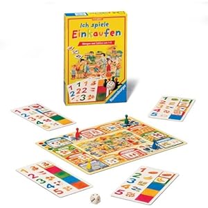 Ich spiele EinkaufenWer kauft was ein? - Hier geht es um Zahlen und Mengen von 1 bis 5.Mit einer Einkaufsliste macht sich jedes Kind auf den Würfelweg von einem Geschäft zum anderenBeim Bäcker kauft es vier Hörnchen.Wie viele Äpfel soll es beim Obstladen kaufen?Und wo bekommt es die Zeitung?Spielerisch wird es mit Zahlen, Mengen, Geschäften und Waren vertraut.Inhalt:1 Spielplan4 Spielfiguren4 Einkaufslisten20 Warenkärtchen1 Würfel von 1-4Warnhinweis: Achtung! Nicht für Kinder unter 36 Monaten geeignet.