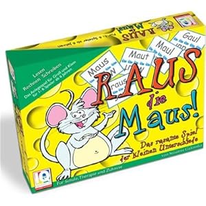 Raus die MausBei diesem Anlegespiel musst Du schnell sein! Du kannst so lange Karten ablegen, bis es heißt "Raus die Maus!". Dieses Spiel bringt die ganze Familie an den Tisch. Eine langsamere Spielmöglichkeit nimmt das Tempo heraus, und die sprachfreie Juniorvariante ist bereits ab 5 Jahren spielbar. Raus die Maus ist in Kindergarten, Schule und Therapie hervorragend einsetzbar.Inhalt: 60 Stanzkärtchen"Raus die Maus!. ist ein Wortspiel rund um Minimalpaare. Für das Erlernen des Lesens und einersicheren Wortschatzkompetenz ist es wichtig, treffsicher kleine Unterschiede in Buchstabenfolgen undWortbedeutungen erkennen und benennen zu können.Wenn Du an der Reihe bist, darfst Du Deine Karten an bereits ausliegende Karten anlegen, wenn siesich in genau einer Figur (bei den Bildkarten) oder in genau einem Buchstaben (bei den Wortkarten) angenau der gleichen Stelle unterscheiden.Aber Du musst schnell sein, denn Du darfst nur so lange anlegen, bis Dein linker Nachbar seine ersteKarte gefunden und angelegt hat. Wer als erstes keine Karten mehr hat, ist Sieger.