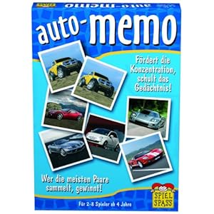 Auto-MemoDa schlägt das Herz eines jeden Jungen höher. Sportwagen, Limousinen und andere Autos sind in schönen Fotos festgehalten worden. Alle Fotos kommen je zweimal vor.Die Paare gilt es zu finden. Hier zeigen die Kleinen ihre Merkfähigkeit !Deshalb wird das Spiel immer wieder gerne gespielt.