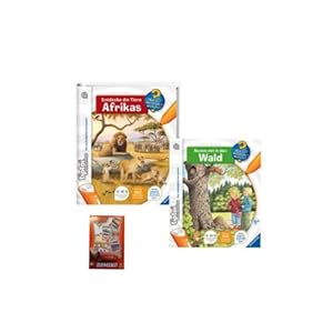 - Lieblingstiere in freier WildbahnTiptoi Stift nicht enthalten. Tiptoi Buch Wieso? Weshalb? Warum? Entdecke die Tiere AfrikasTiptoi macht Wissen lebendig und ermöglicht es Kindern selbständig auf Entdeckungsreise zu gehen.Savannen, Wüsten und Regenwälder - die vielfältigen Landschaften und Klimazonen Afrikas bieten den verschiedensten Tieren eine Heimat. Elefanten, Giraffen, Zebras, Menschenaffen und viele weitere Bewohner Afrikas werden auf dieser Safari lebendig.Gemeinsam mit Kati und Felix machen sich die Kinder auf in den Wald. Dort gibt es viele Tiere wie zB die verschiedenen Vogelarten, prächtiges Rotwild oder borstige Wildschweine. Ausserdem erfahren sie, was sich nachts im Wald bewegt- da ist ja wirklich so einiges los! Aber neben der Tierwelt gilt es natürlich auch, die verschiedenen Bäume kennenzulernen. Tiptoi Buch Wieso? Weshalb? Warum? Komm mit in den Wald Inkl. Cars Kartendomino mit 32 Karten - Authentische Geräusche erwecken Afrikas Tierwelt zum Lebenund:Mit dem audiodigitalen Lernsystem Tiptoi von Ravensburger können Kinder mit diesem Buch den Wald erleben und entdecken. Über 800 Geräusche und Texte vermitteln kindgerechtes Sachwissen über Tiere und Pflanzen.