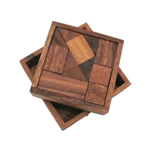 Bestandteile/Inhalt: Box mit 10 HolzteilenMaße in cm: 10,3 x 10,3 x 3,7 Gewicht in g: 200Größe (relativ gesehen): XLSpieleranzahl: Ein Spiel für einen Spieler.Beschreibung/Ziel des Spiels: Versuchen Sie die Steine richtig in die Box zu legenSchwierigkeit (1-5): 4Besonderheit/Infos/Rechtliches: Spiel und Spaß aus Holz - Knifflige Holspiele, schlaue Spielchen, knifflige Geduldsspiele, IQ-Spiele - für jeden etwas. Unsere Produkte sind aus umweltfreundlichem Plantagenholz vom Samanea-Baum (Albizia Saman oder lat. Pithecellobium Saman) hergestellt. Wegen seiner schönen Struktur und Farbe hat Samanea-Holz Ähnlichkeit mit Teakholz oder Mahagoni. Die warme Ausstrahlung des edlen, rötlich braunen Holzes unterstreicht dabei den exotischen Charme. In aufwendiger Handarbeit und mit einfachen Maschinen wurde das Spiel aus dem Holz des tropischen Regenbaumes gefertigt und bezaubert jedes Spiel/Rätsel mit seinem warmen Flair. Die Behandlung mit umweltfreundlichem Teakholzöl verleiht dem Holz einen honigfarbenen, warmen Ton sowie einen matten Seidenglanz, der auch nach langer Verwendung nicht abnutzt. Samanea-Holz ist eine feste Holzart und somit ideal für diese Art von Spielen/Rätsel geeignet. Wir wünschen Ihnen viel Spaß beim Spielen und Lösen der Rätsel.Achtung: Nicht für Kinder unter 36 Monaten geeignet.Überraschungsbox Holzspiel/Holzpuzzle/IQ Spiel Feature